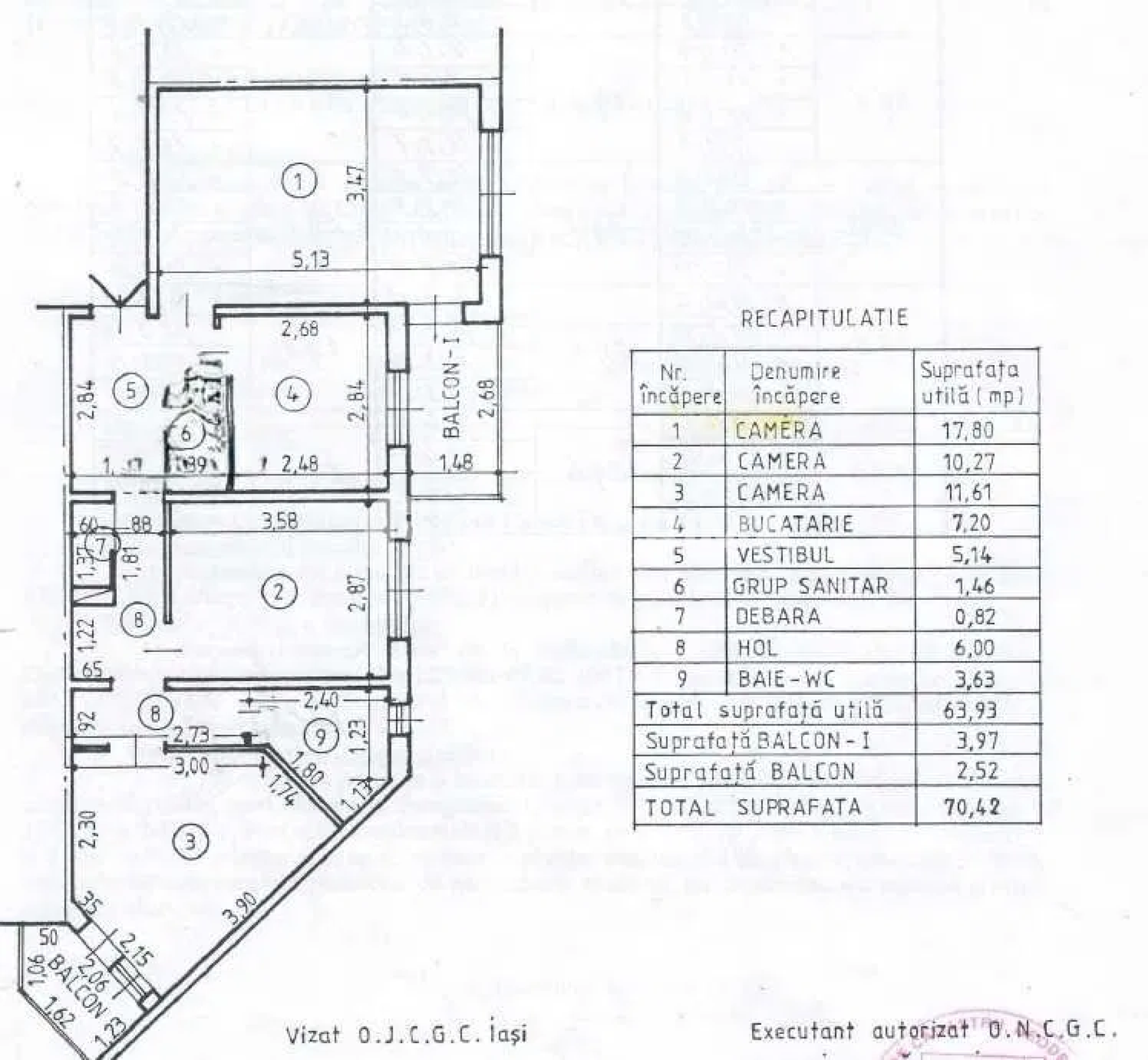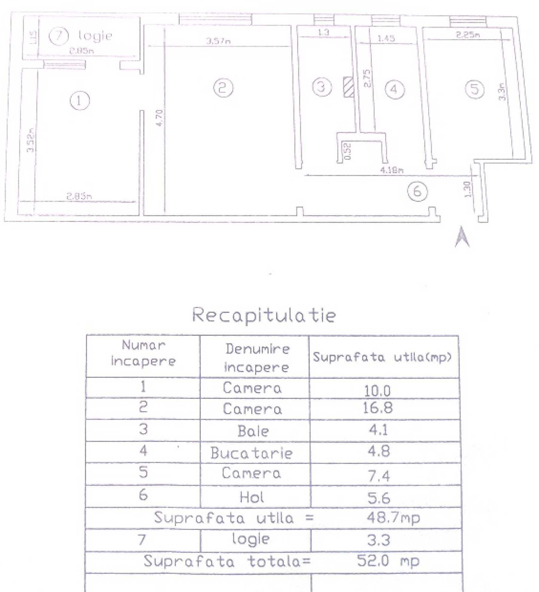 Apartament 2 camere DECOMANDAT, 54 mp, CT, PVC, et. intermediar, Alexandru