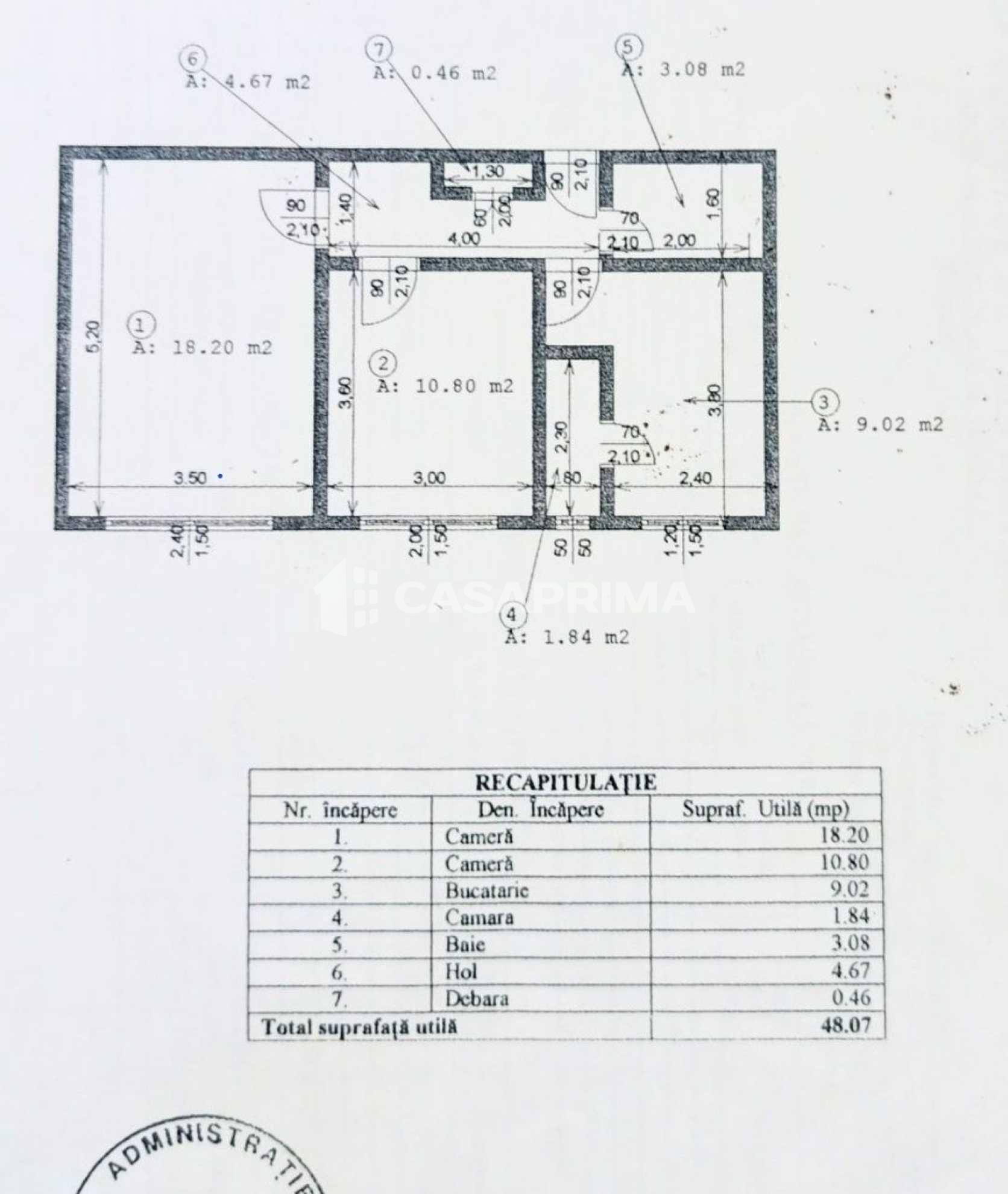 Apartament 4 camere 90 mp, 2 bai, 2 balcoane, CT, AC, Dacia